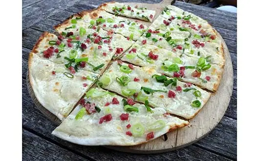 Tarte Flambée, Flammwaie, Flammkueche oder Flammkuchen ist ein sehr dünn ausgerollter Teig, der traditionell mit roten Zwiebeln, Speck und Crème Fraîche belegt wird. Ursprünglich aus dem Elsass sowie Baden und der Pfalz stammend, erfreut sich dieses leicht lockere Gericht mittlerweile bundesweit großer Beliebtheit. Dieser knusprige Gaumenschmaus ist Genuss für Leib und Seele, probieren Sie selbst!